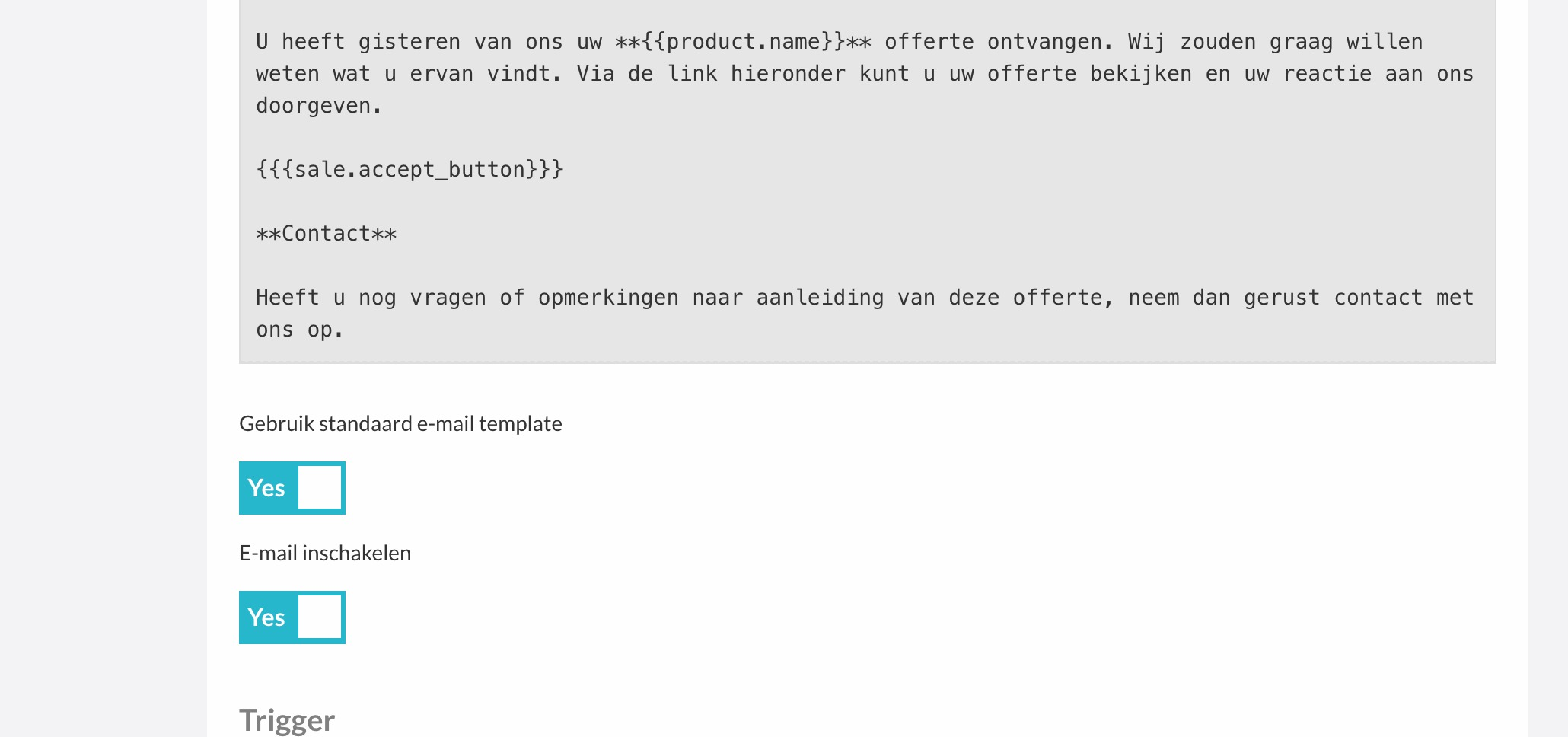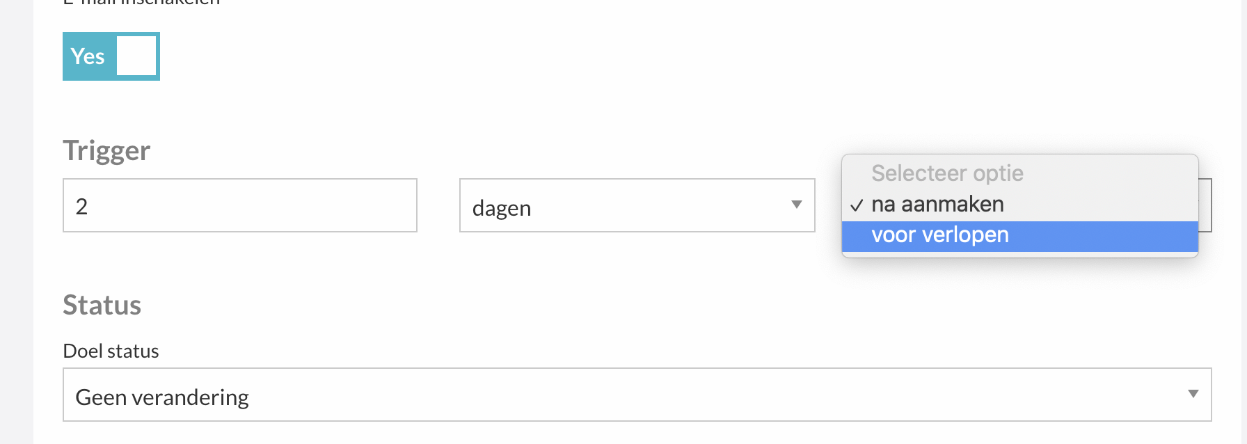 Voorbeeld: Wil je dat de klant 2 dagen voordat de offerte verloopt een herinnering krijgt? Stel dan '2 dagen vóór verlopen' in.