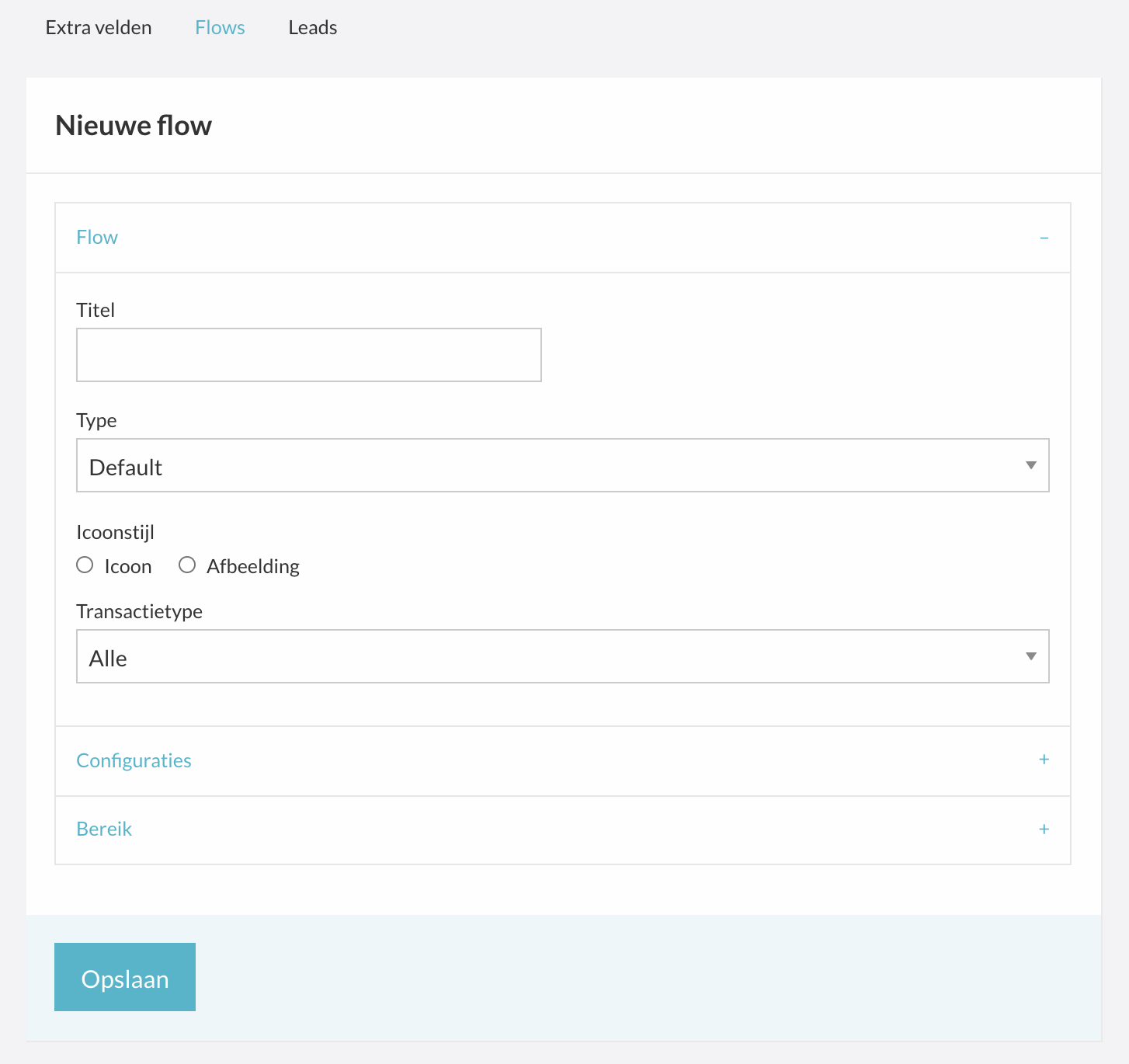 Naam: Geef de flow een duidelijke naam. Let op: deze naam is ook zichtbaar voor de verkopers.