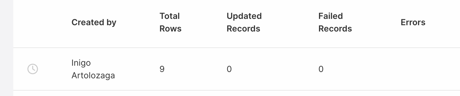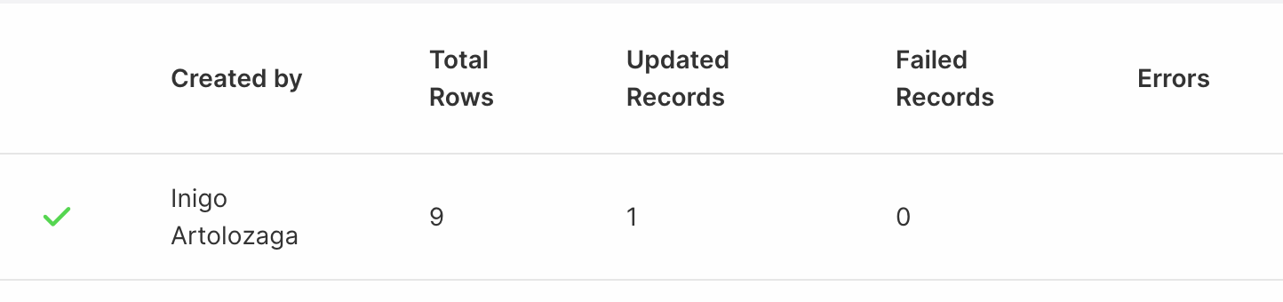 Wanneer je een import hebt voltooid, word je doorgestuurd naar de importpagina, waar je alle importbestanden kunt zien die door je account zijn geïmporteerd.