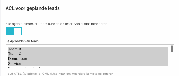 Via Account>>Organisaties>>Teams kan je per team instellen of alle agents binnen dit team de leads van elkaar kunnen benaderen. Zodra je deze functie inschakelt, kunnen je teamgenoten ook leads opvolgen die niet direct aan hen zijn toegewezen.